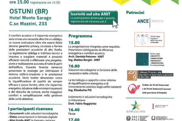 Continua a leggereStrategie per ottimizzare il sistema edificio-impianto e il comfort acustico 2 Ottobre 2019 ore 15.00 (registrazione ore 14.30) OSTUNI (BR) Hotel Monte Sarago C.so Mazzini, 233 La partecipazione al convegno è gratuita, registrazioni sul sito...