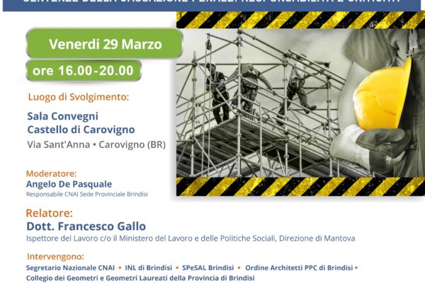 Partenza corso Venerdì 17 Maggio 2019 ore 15:00 Durata totale 16 ore Luogo corso: sede "Hotel Orientale" - C.so Garibaldi, 40 - Brindisi N. 16 Crediti Formativi Professionali per Geometri previa iscrizione nel SINF...
